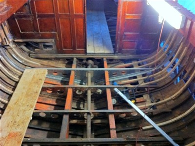 Akterspegeln monteras nu vartefter. Det blir synnerligen vackert. Trots det kommer eken täckas med 15 m.m. hondurasmahogny.